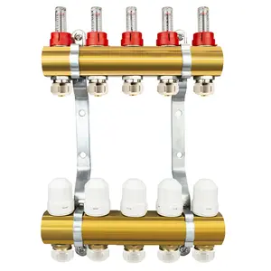 Rozdzielacz CO mosiężne do podłogówki 50 - uzbrojony (odpowietrzniki automatyczne, trójniki, zawory spustowe) 8 obwodów
