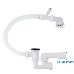 Syfon wanny nadstropowy 50 mm z wyjściem na pralkę i metalowym sitkiem