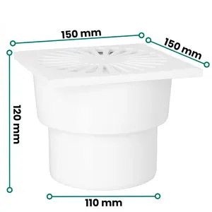 Kratka kanalizacyjna dolna plastikowa 110 mm 150 mm x 150 mm