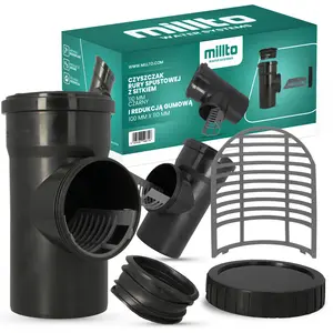 Czyszczak rury spustowej z sitkiem 110 mm czarny i redukcją gumową 100 mm x 110 mm