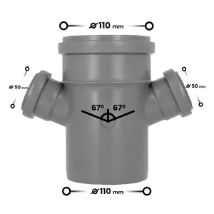 Czwórnik kanalizacyjny 110 mm x 50 mm x 110 mm x 50 mm 67º szary
