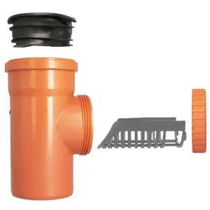 Czyszczak rury spustowej z sitkiem 110 mm pomarańczowy i redukcją gumową 100 mm x 110 mm