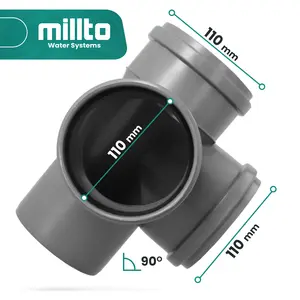 Trójnik kanalizacyjny 110 mm x 110 mm x 110 mm 90º z odejściem 110 mm lewe szary