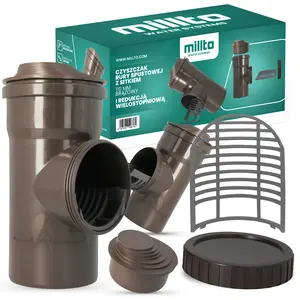 Czyszczak rury spustowej z sitkiem 110 mm brązowy i redukcją wielostopniową 110 mm brązowy