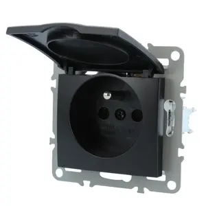 (84)Gniazdo Quadra podtynkowe czarne pojedyncze z bolcem i klapką