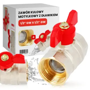 Zawór kulowy motylkowy z dławikiem 1/2" GW x 1/2" GW