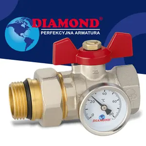Zawór kulowy motylkowy z dławikiem, termometrem 10 bar 1'' GW x 1 1/4'' GZ i śrubunkiem 1 1/4'' GW x 1'' GZ czerwony