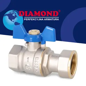 (378)Zawór kulowy motylkowy z dławikiem 30 bar 1 1/4'' GW x 1 1/2'' GZ i śrubunkiem 1 1/2'' GW x 1 1/4'' GZ