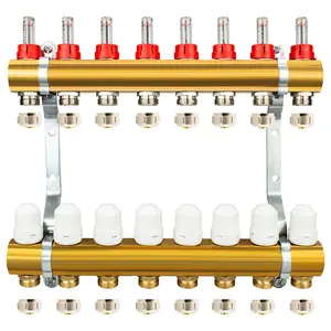 Rozdzielacz CO mosiężne do podłogówki 50 - uzbrojony (odpowietrzniki automatyczne, trójniki, zawory spustowe) 11 obwodów