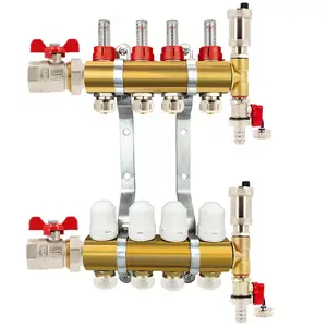 Rozdzielacz CO mosiężne do podłogówki 50 - uzbrojony (odpowietrzniki automatyczne, trójniki, zawory spustowe) 4 obwody