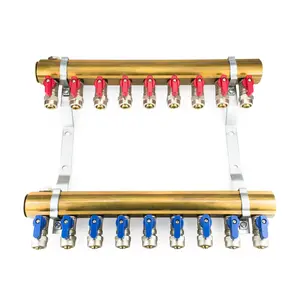 Rozdzielacz CO mosiężne do podłogówki 50 - uzbrojony (Adaptery PEX) 10 obwodów