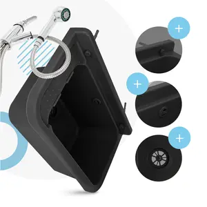 Komora gospodarcza z półką 50 cm x 34 cm x 21 cm czarny i baterią z wyciąganym natryskiem