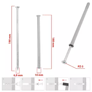Kołki rozporowe z wkrętem z łbem stożkowym 10x50 / 6,0x70 50 sztuk