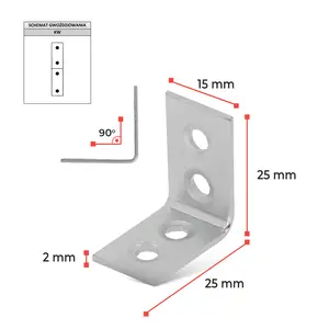 Kątownik wąski 25 mm x 25 mm x 15 mm