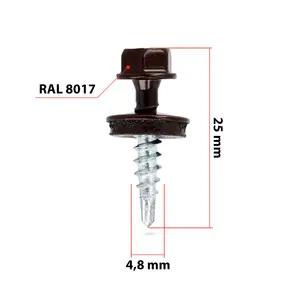 Wkręty farmerskie samowiercące z podkładką EPDM 4,8 x 25 mm brązowe RAL 8017