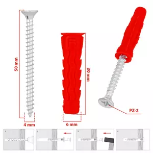 - Ilość sztuk w opakowaniu:50 kołków + 50 wkrętów
