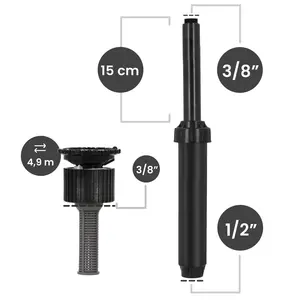 Zraszacz wynurzalny 15 cm 1/2'' GW x 3/8'' GZ z dyszą regulowaną 0-360° / 4,9 m 3/8'' GW