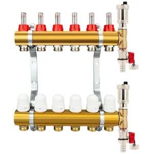 Rozdzielacz CO mosiężne do podłogówki 50 - uzbrojony (odpowietrzniki automatyczne, trójniki, zawory spustowe) 6 obwodów