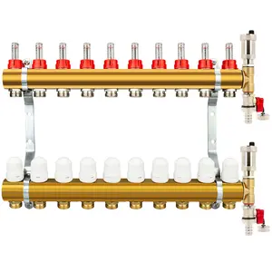 (61)Rozdzielacz CO mosiężne do podłogówki 50 - uzbrojony (odpowietrzniki automatyczne, trójniki, zawory spustowe) 10 obwodów