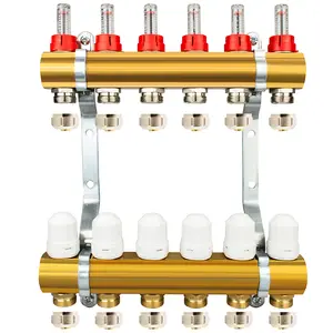 Rozdzielacz CO mosiężne do podłogówki 50 - uzbrojony 6 obwody