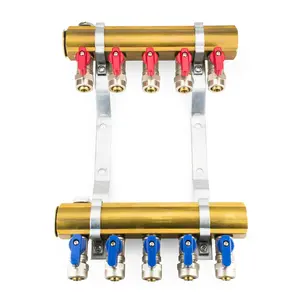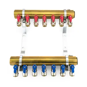 Rozdzielacz CO mosiężne do podłogówki 50 - uzbrojony (odpowietrzniki automatyczne, trójniki, zawory spustowe) 8 obwodów
