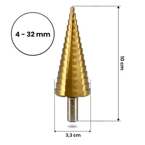 (7)Zestaw wierteł stopniowych HSS 4 - 32 mm 4 szt.