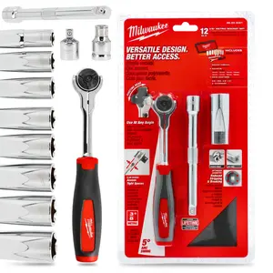 (9)Klucze nasadowe 3/8" z ruchomą grzechotką i przedłużką 12 el. Milwaukee®