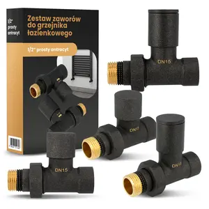 Zestaw zaworów do grzejnika łazienkowego 1/2" kątowy Antracyt
