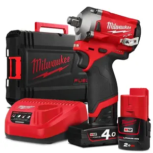 FIWF12-422X Subkompaktowy Klucz udarowy FUEL™ 1/2" kwadratowy z 2 akumulatorami, ładowarką C12 C oraz walizką Milwaukee®