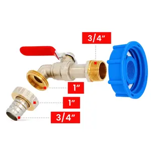 Zawór czerpalny z dławikiem 3/4'' GZ x 1'' GZ z przyłączem na wąż 1'' GW x 3/4'' W i złączem IBC S60x6 2'' GW / 3/4" GW