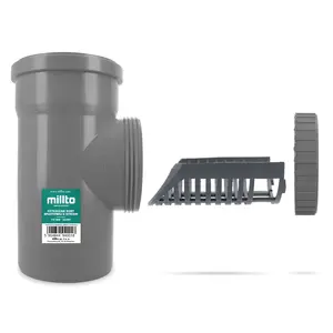 Czyszczak rury spustowej z sitkiem 110 mm szary i redukcją gumową 100 mm x 110 mm