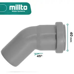 Kolano kanalizacyjne 40 mm x 40 mm 45º szare