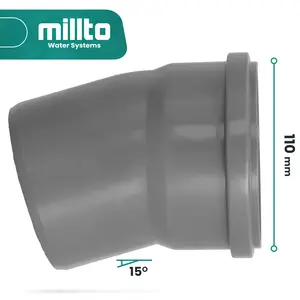 Kolano kanalizacyjne 110 mm x 110 mm 15º szare