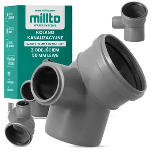 (609)Kolano kanalizacyjne 110 mm x 110 mm 45º z odejściem 50 mm lewe szary
