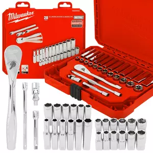 (2)Klucze nasadowe 3/8" z ruchomą grzechotką i przedłużką 12 el. Milwaukee®