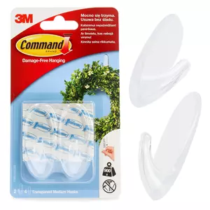 Haczyk wielokrotnego użytku średni przezroczysty 2 szt. + 4 paski mocujące