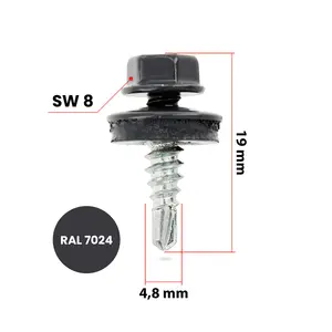 Wkręty farmerskie samowiercące z podkładką EPDM 4,8 x 35 mm grafitowy RAL 7024