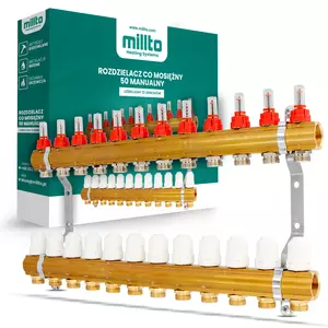 Rozdzielacz CO mosiężne do podłogówki 50 - uzbrojony 12 obwody