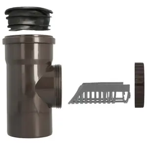 Czyszczak rury spustowej z sitkiem 110 mm brązowy i redukcją gumową 100 mm x 110 mm