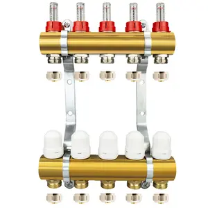 Rozdzielacz CO mosiężne do podłogówki 50 - uzbrojony (Adaptery PEX) 5 obwodów