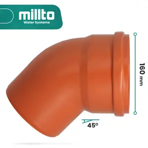 Kolano kanalizacyjne 160 mm x 160 mm 45º pomarańczowe