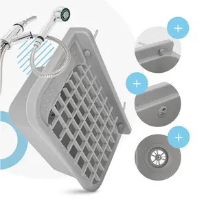 Komora gospodarcza z półką 50 cm x 34 cm x 21 cm i kratką 36 cm x 30 cm szary i baterią z wyciąganym natryskiem