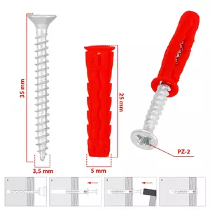 Kołki rozporowe z wkrętem z łbem stożkowym 5,0x25 / 5,0x35 200 sztuk