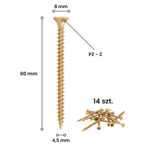 Wkręty do drewna z łbem stożkowym i gniazdem PZ 4,5 x 60 w blistrze 14 sztuk