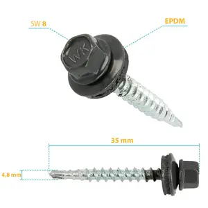 Wkręty farmerskie samowiercące z podkładką EPDM 4,8 x 35 mm czarny RAL 9005