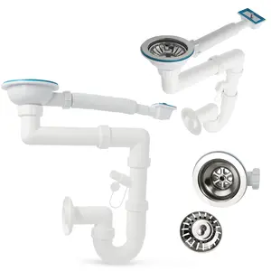 Syfon zlewu jednokomorowego 3,5'' x 50 mm plastik z przelewem i metalowym sitkiem