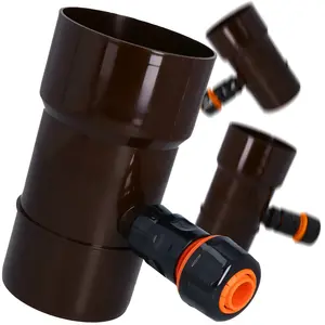 Odzyskiwacz wody deszczowej 90 mm x 1'' GZ brązowy z przyłączem pod szybkozłączke 1'' GW x SZ PowerJet i szybkozłączka 3/4'' W x SZ PowerJet