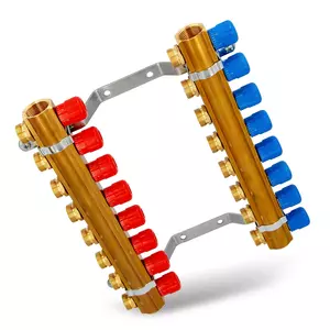 Rozdzielacz CO mosiężne do podłogówki 50 - uzbrojony 6 obwody