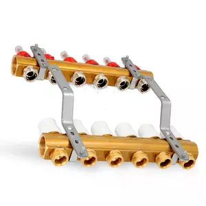 Rozdzielacz CO mosiężne do podłogówki 50 - uzbrojony 6 obwody