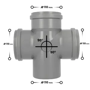 Czwórnik kanalizacyjny 110 mm x 110 mm x 110 mm x 110 mm 90º szary